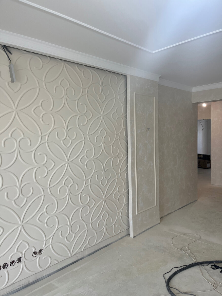 Реализованный объект в Краснодаре. Использованы наши материалы. 1. Стены: декоративная штукатурка Goldshell - Небиа Матовая (создаёт эффект воздушных облаков) acs 51, дозировка 10. 2. Лепнина: Молдинг 1.51.322 2. Потолок: краска Hygge Aster 3. Грунт глубокого проникновения везде Olsta Primer Interior 4. Малярный флизелин Ecovlies плотностью 150 Технику нанесения декоративной штукатурки смотрите на ютуб-канале «Ремонт Без Купюр». Подобрать и заказать декоративную штукатурку, лепнину, краску, обои и фрески можно в одном из наших салонов: г. Краснодар, ул. Бабушкина, 234 8 (918) 449 00 47 г. Сочи, ул. Пластунская, 29 (ТЦ «Панорама») 8 (962) 858 16 41 г. Пятигорск, ул. Ермолова, 22/1 8 (962) 858 16 44 г. Саратов, ул. Кутякова, 94 8 (937) 225 31 00 Отдел оптовых продаж 8 (962) 853 06 76
