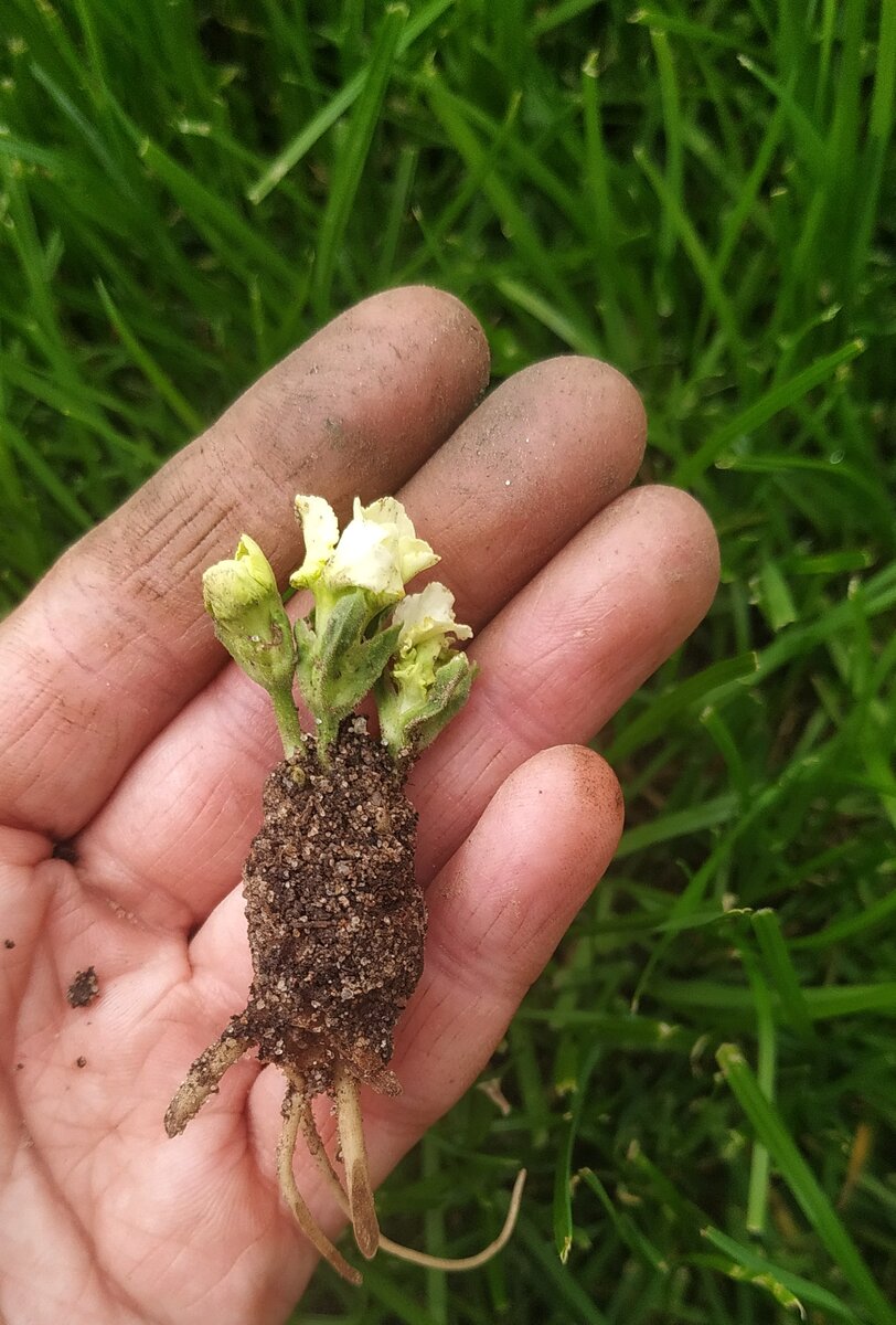 Иногда в саду происходят удивительные вещи! Творятся чудеса, которые можно обозначить просто как чудные, как радующие и как печальные. Чудо из чудес обнаружила я на днях под своей махровой кремового цвета примулой. Зрение то плохое. Вижу рядом с кустом этой примулы чего то белеет. Без разбора выдернула. В руке были мелкие, недоразвитые цветы этой примулы с корнями. А может и не этой. Посадила, где у меня деленки разные. Не знаю жизнеспособно это чудо или нет. И вобще как это могло произойти... Куст рядом с которым обнаружилось, сам после деления, был посажен уже без цветов. Да и эти корешки росли отдельно, с кустом они не были связаны, только близостью расположения.) Получается каким то случайным образом соцветие примулы попало в грунт и дало корни... Еще обнаружила выросшую впритык к купленному в прошлом году в гарденплантсе флоксу, некий злак. Может и дикий, но я такого еще не видела. Отсадила. Наблюдаю. И это не в первый раз уже такие "подарки". В прошлый раз в одном горшочке вме