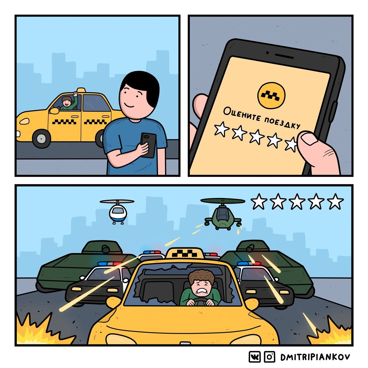 В видеоиграх есть много условностей, без которых зачастую просто не обойтись. Например, шкала жизни, чтобы игрок видел в каком состоянии его персонаж. Или обязательные столкновения с боссами после прохождения определенного этапа. Но что, если бы эти условности вдруг попали в реальный мир? Сегодняшняя подборка как раз посвящена этой теме - я собрал для вас несколько смешных комиксов, персонажи которых столкнулись с неожиданными для обычной жизни, но характерными для видеоигр проблемам. Надеюсь, что вам понравится! В играх серии GTA у персонажа есть специальный показатель, который указывает на уровень разыскиваемости. Если за героем числится много преступлений, совершенных на глазах полиции, то за ним обязательно будут гонятся власти. Комикс от новосибирского художника Дмитрия Пьянкова отсылается именно к этой игровой особенности. Художник Рик Хокинс (Ricky Hawkins) - автор серии Inky Rickshaw («Чернильная рикша») - посвятил одну из своих работ теме собеседования. Но, как вы могли догад