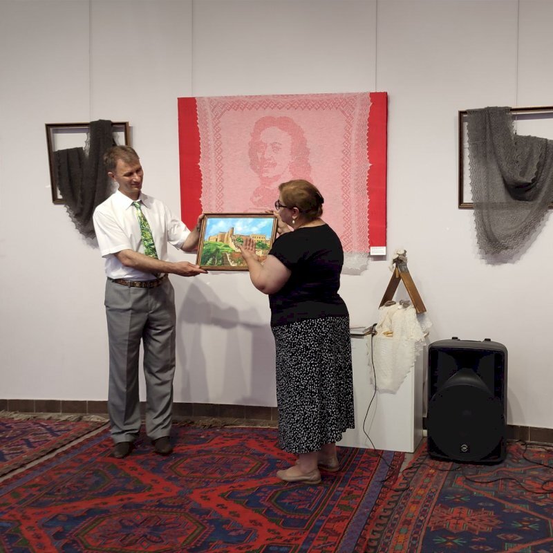 Оренбургский пуховый платок с изображением Петра I показали в городе Дербенте республики Дагестан. Выставку пуховых изделий привезли из Оренбургского музея ИЗО. Открытие выставки «Оренбургский пуховый платок - душа России» прошло в музейном комплексе «Дом Петра I». Там публике представили платки лучших оренбургских мастериц, среди которых – большой платок с изображением царя, который стал инициатором основания города-крепости на реке Яик (ныне – Урал). Выставка открылась в рамках цикла выставочных проектов «Семья - душа России», организованного «РОСИЗО», и программы «Территория культуры» по заказу Минкультуры РФ. Дни оренбургского пухового платка открылись космической выставкой Отметим, пуховязальный промысел существует в Оренбургской области с XVIII века до нашего времени. Под пуховым платком здесь подразумевают и толстый платок, именуемой шалью, и тонкий, ажурный – «паутинку». Вязальщицы гребнем чешут козу вручную, а нить прядут на веретене и вяжут пуховые изделия на спицах. В 2017 г
