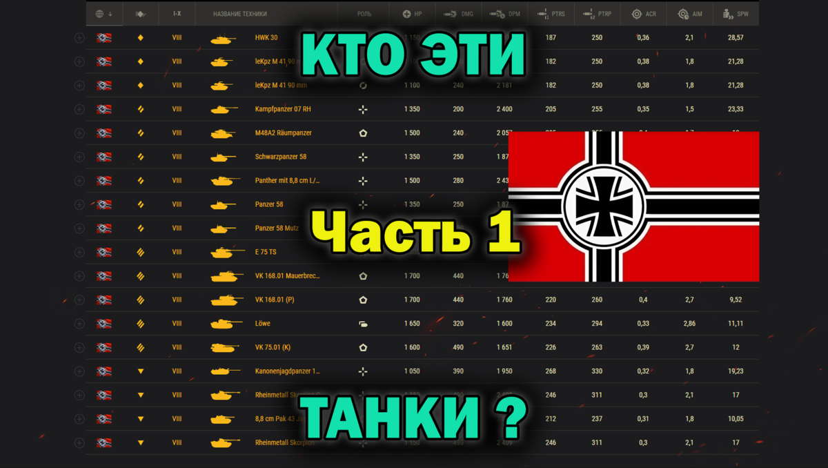 Всем приветствую, дорогие мои друзья! У нас уже было 2 части премиумных танков 8 уровня нации СССР, машины там достаточно интересные и своеобразные. Пора приступать к немецкой нации. Не буду долго рассусоливать, приступим к обзору первой части танков, поехали! HWK 30 (ЛТ) Достаточно интересный аппарат. Очень быстрый, имеет отличную удельную мощность и замечательную максимальную скорость. С обычной оптикой и нужными перками имеет около 515 метров обзора, что является очень запредельным показателем. Танк картонный, фугасы кушает с удовольствием. Также у танка есть комфортное орудие, которое имеет ещё хорошее пробитие ОФ снарядом. Небольшая маскировка тут также присутствует! Моя оценка: 8/10 Есть в продаже?: ДА Танк для всех игроков?: Для тех, кто умеет играть на ЛТ. Стоит ли приобретать?: Да, вполне хороший немецкий ЛТ. leKpz M 41 90 mm / GF (ЛТ) Это тот самый американский бульдог, только немецкий) Имеет отличный обзор, но хуже, чем у его собрата HWK, есть отличная скорость и удельна