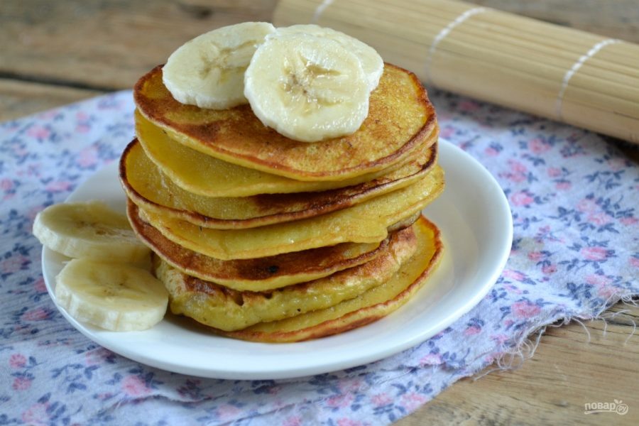 Банановые оладьи я традиционно готовлю на выходных. Блюдо, скажу я вам, получается просто бесподобное. Обычно я готовлю оладьи из двух бананов – массы как раз хватает на 8-10 оладий, как раз столько, чтобы плотно позавтракать двум детям. Если вы следите за своей фигурой, то сахар в тесто для оладий можете не класть, они и без него будут вкусными. Еще один важный совет – бананы берите спелые, я бы даже сказал, переспевшие. Они хорошо и легко разминаются в кашицу, и тесто получится более однородным, как раз таким, как нужно. Из данных ингредиентов получается 2 порции (8-9 шт.). Хотите больше умножайте все на 2) Ингредиенты: 1. Банан-------------------------------------2 шт. 2. Молоко----------------------------------60мл. 3. Мука-------------------------------------100гр. 4. Сахар------------------------------------2 ст.л. 5. Разрыхлитель---------------------------1 ч.л. 6. Масло растительное (для жарки!)----1ст.л. 7. Яйца-------------------------------------1 шт. К