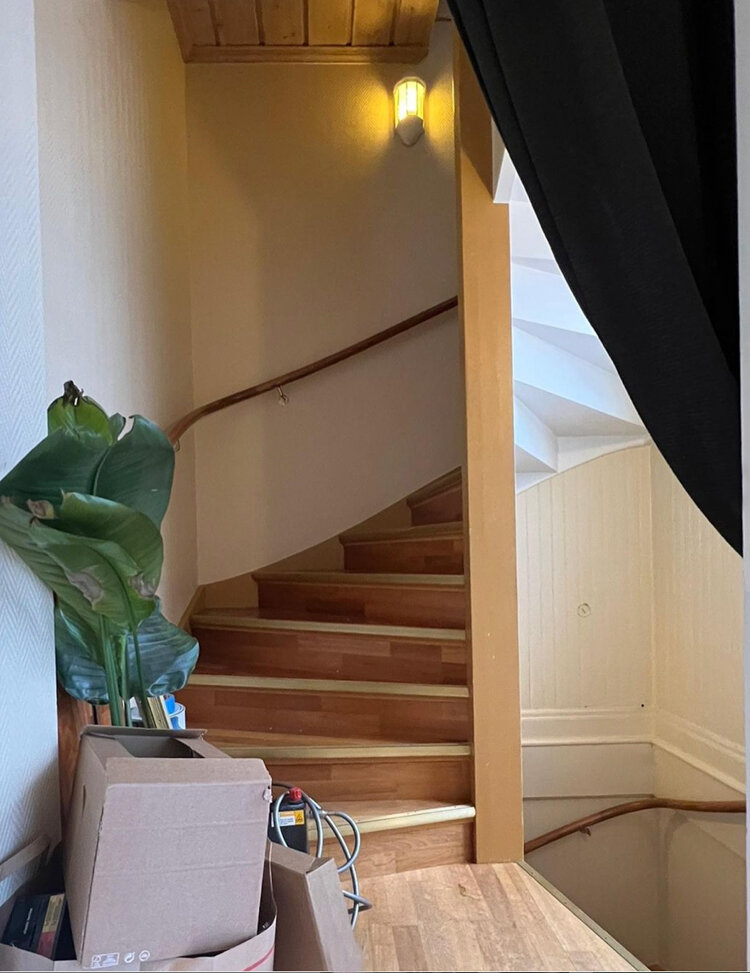 Жозефина Ганхамре , ее муж Рикард и их четвероногие друзья Бадди и Фрэнк снимают верхний этаж дома ее родителей в Лексе, недалеко от Евле. И всё бы ничего, но квартира изрядно износилась, поэтому пара решила сделать полномасштабное преображение своего жилья. Квартира на 65м полностью отделена от остальной части дома и имеет отдельный вход и даже лестничную клетку. Спрятанные под крышей углы часто являются усложняющим фактором в подобных квартирах и могут быть большой проблемой для организации как отдельных комнат, так и жилья в целом. Но пара отлично поработала с имеющимся у них пространством и превратила устаревшую квартиру в уютное, теплое и привлекательное место в шведском стиле. Давайте подробно рассмотрим каждую комнату. Лестничная площадка. ДО: ПОСЛЕ: Особых изменений лестничная площадка не перетерпела. Единственное, что хозяева покрасили лестницу и углы. Прихожая. ДО: ПОСЛЕ: Прихожая преобразилась более масштабно. Особенно это заметно в системе хранения. Отдельно хочется отметит