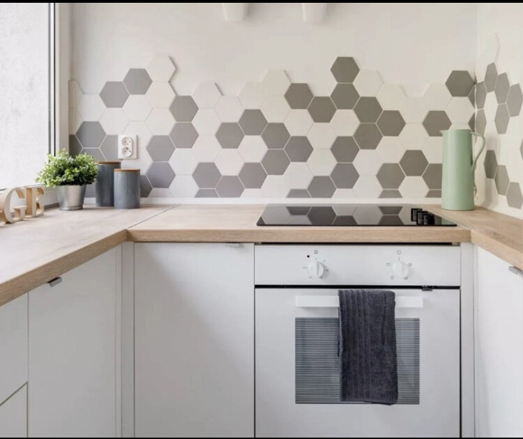 Самым надёжным и проверенным временем решением остается фартук из керамической плитки. Единственная сложность, с которой можно столкнуться — со временем потемнеют швы, но их можно обновить.