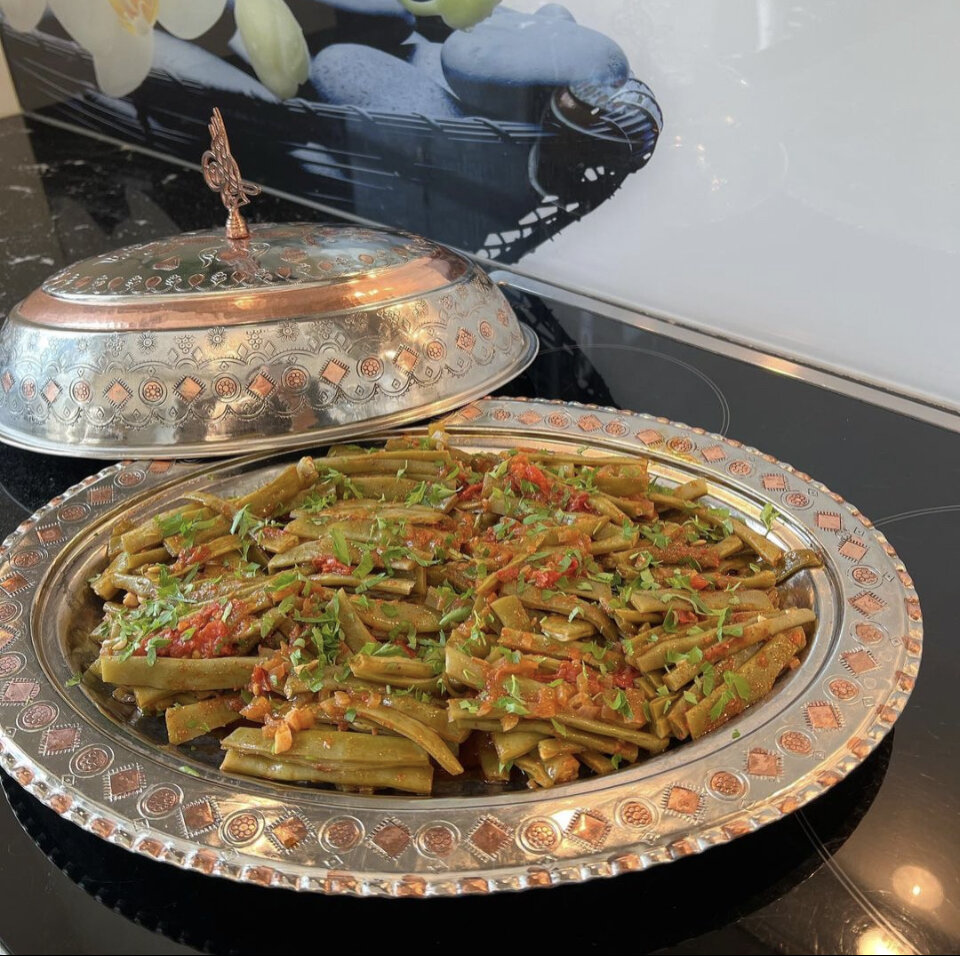 Всех приветствую ! Сегодня приготовим свежую фасоль с оливковым маслом. Это легкая еда и очень вкусно. Ингредиенты: 1 кг зеленой фасоли 2 луковицы 2 больших помидора 2-3 зубчика чеснока для соуса; 1,5 чайные ложки томатной пасты 1 чайная ложка паприки 1 чайная ложка молотого красного перца 1 чайная ложка черного перца 1,5 чайные ложки соли 1 чайная ложка сахара 1,5 стакана горячей воды половина чайной ложки оливкового масла Процесс приготовления : Промойте, отсортируйте и нарежьте фасоль. Лук, чеснок, помидоры нарезать кубиками. На дно подходящей кастрюли выложить нарезанные лук и чеснок, затем насыпать фасоль по краям кастрюли с зазором по центру кастрюли. Для соуса смешайте томатную пасту, специи, соль, оливковое масло, сахар и горячую воду в миске и залейте фасоль. Поставьте на плиту и, когда она начнет кипеть, убавьте огонь и медленно варите на медленном огне до полного приготовления. Подавать после того, как он остынет. На гарнир можно рис или гречку. Я подала с рисом. П