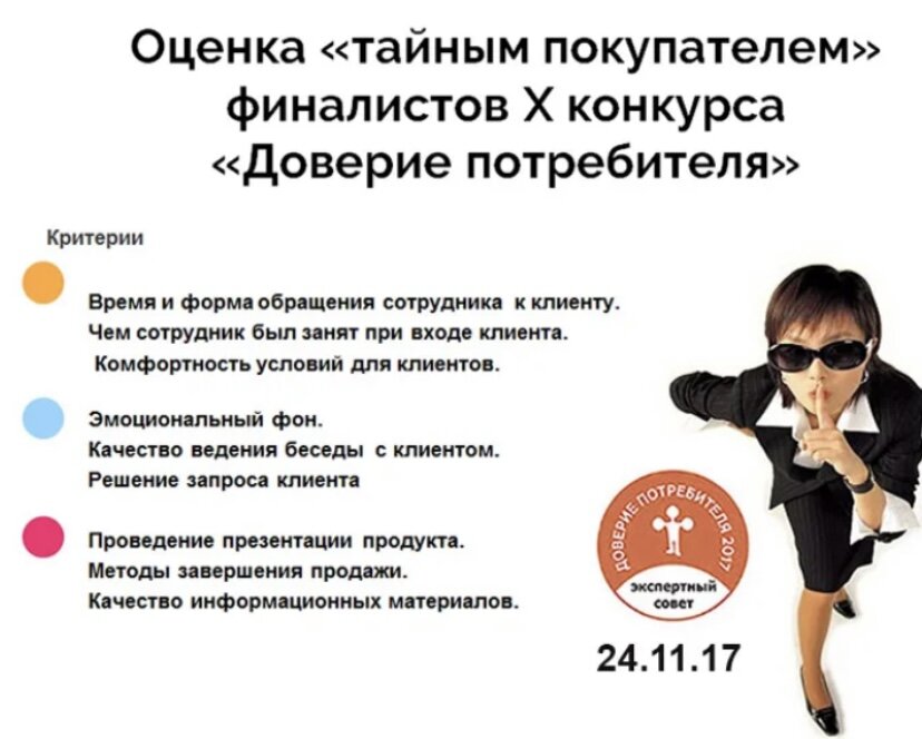 Тайных покупателей нанимают как массовые торговые сети, так и бутики, салоны по продаже товаров премиум-класса, банки, кафе и рестораны, салоны красоты и другие организации сферы обслуживания. Иногда они размещают вакансии тайных покупателей напрямую, иногда нанимают через агентства, у которых сразу несколько таких заказчиков. Суть работы в том, что нужно: За свои услуги тайный покупатель получает оплату — как правило, сдельную (в зависимости от количества точек, которые он посетил). Чаще всего к тайным покупателям не предъявляют никаких особых требований (актерских навыков, например, не требуется). Но если у места, где нужно выступить в роли клиента, есть специфика, важно ей соответствовать. Например, в вакансии по проверке продаж квартир в жилищных комплексах премиум-класса можно увидеть такое пожелание: «Возможность создать образ финансово состоятельного покупателя: стиль, одежда, аксессуары, уверенная речь». «Это неплохая подработка, когда ты студент или пенсионер»