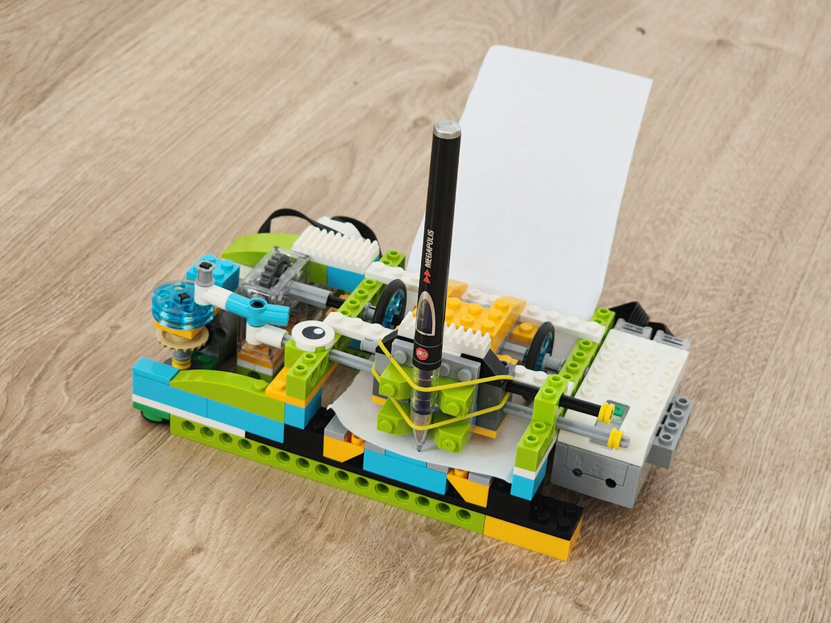 Сегодня мы решили вернуться к модификации принтера. Одного нашего инженера очень огорчило, что принтер печатает только волнистую линию. Пришлось взяться за модификацию. Поскольку в нашем распоряжении не один набор WeDo, мы смогли установить второй двигатель на управление ручкой. Казалось, это самое сложное действие на пути к печати. Но к удивлению нас обоих это вовсе не было самым сложным. Оказалось, что написать программу, также сложно. А может и еще сложнее. Посмотрите на наш промежуточный результат. Количество блоков просто огромно. Это самая большая программа, с которой мы когда-либо встречались. Но и этого мало - она еще и не работала. Вернее мы смогли заставить ее управлять двигателями для написания W, но дальше все пошло совсем не по плану. Хорошо, что всегда можно воспользоваться Scratch. Что я и посоветовал сделать. Неожиданно для меня написание программы на Scratch тоже вызвало некоторые сложности у нашего инженера. Но совместными усилиями мы смогли ее составить. Выяснилось,