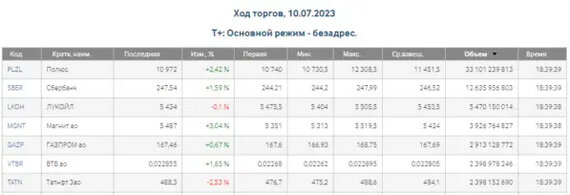📊Понедельник 10 июля закончился активным ростом на Московской бирже