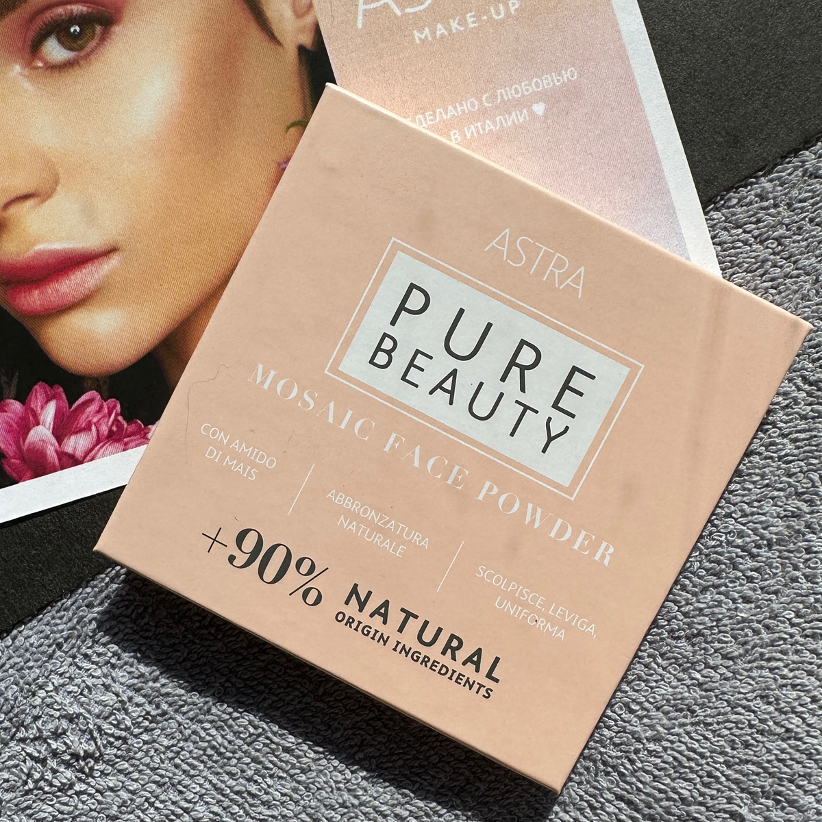 На дворе лето, а значит, каждая хочет немного скрасить лицо и казаться чуть загорелее. Ну а те, кто не хочет, просто могут подчеркнуть свои скулы или же нарисовать их, если таковые отсутствуют) 🌸 Пудра для лица Astra Make-Up Pure Beauty Mosaic Face Powder 🌸 🌸 Внешний вид Красивая картонная упаковка в нежном пастельном персиковом цвете. На обратной стороне присутствует информация о данном средстве: Немного расстроило, что у бронзера отсутствует зеркало, поскольку другие продукты (даже за меньшую стоимость) таковое имеют. Оформление мне все равно нравится, выглядит очень нежно. 🌸 Про бронзер Бронзер представлен в виде мозаики, которая содержит несколько оттенков. Есть очень теплые, есть холодные цвета. Но при их смешении выходит ПРАВИЛЬНЫЙ теплый светло-светло-коричневый оттенок, который не уходит в рыжину. Бронзер слегка подсвечивается, что мне однозначно нравится. Если тереть рефил пальцем, то можно обнаружить, что он начинает затираться. При использовании кисти бронзе