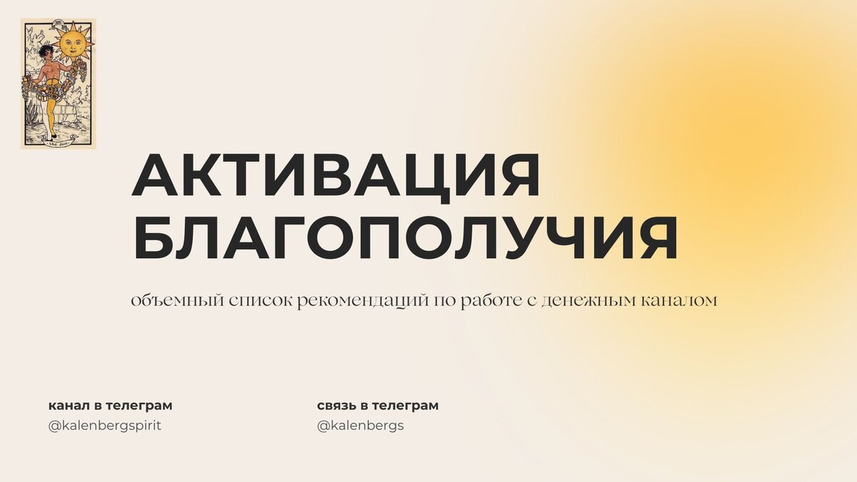 Здесь я дам тебе список на каждый аркан, регулярное следование которому поможет вывести энергии в плюс и принести доход. Действия могут не быть связаны с деньгами напрямую, но они тоже дают результат, уж слишком глубоки взаимосвязи в нашем мире. Смотри в денежный канал (листай карусель).