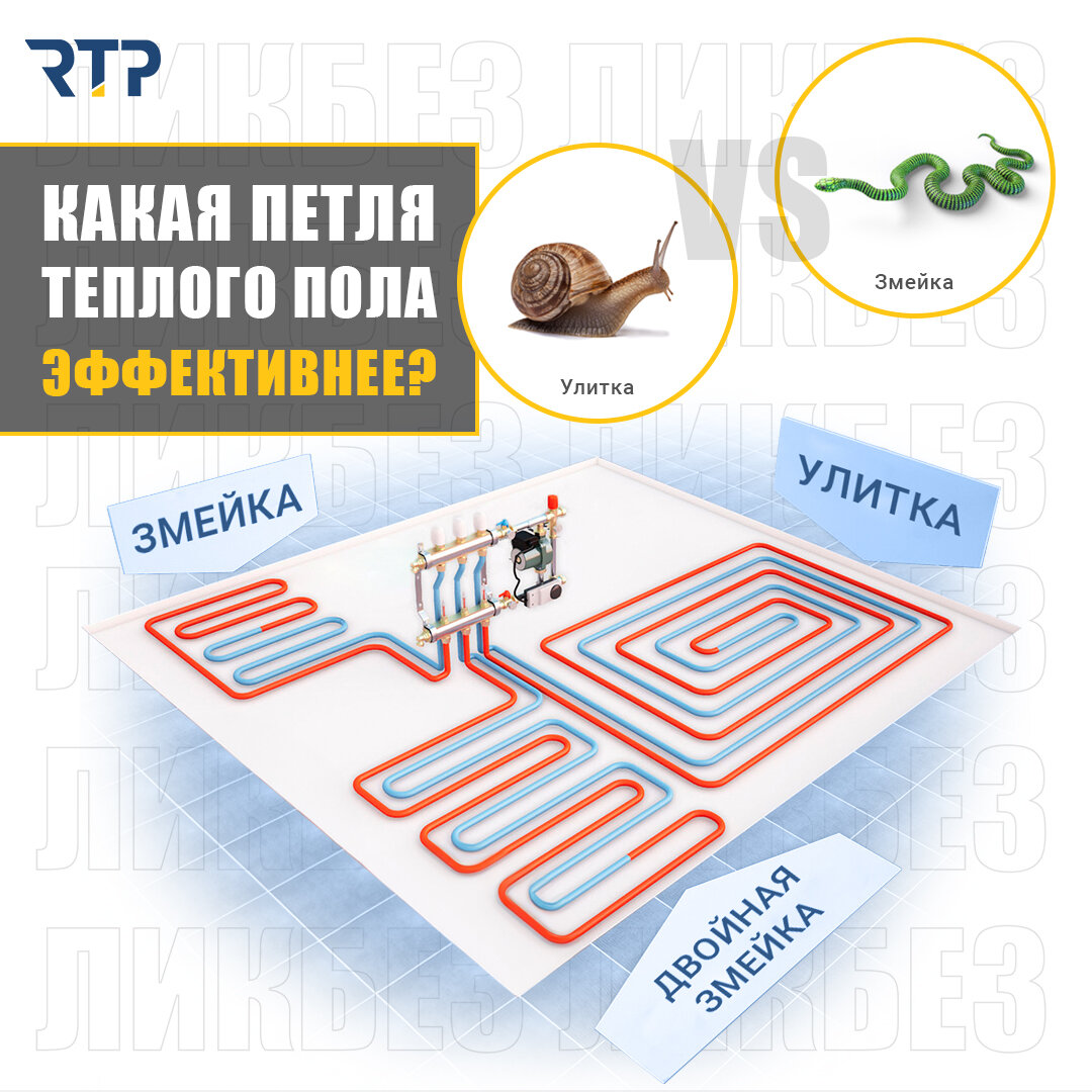 ✔️Равномерное распределение тепла по стяжке против снижения температуры к концу контура у змейки и «зебры» у двойной змейки