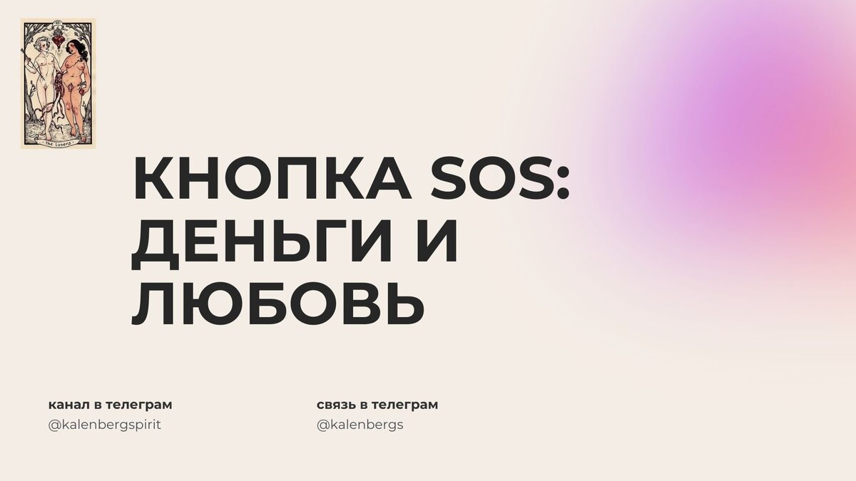 В матрице души есть точка, которая находится на стыке финансов и отношений (отметила в карусели) - ее назвали Ангелом-Хранителем. Если твой партнер мешает тебе зарабатывать деньги или твои действия по отношению к заработку не дают встретить партнера/наладить с ним связь, то энергия ушла в минус. Правильные действия, совершенные по этой энергии, могут на время улучшить обе сферы, дать фору, пока ты не найдешь выход из ситуации в целом. Если кнопка SOS перестала работать, значит, проблема гораздо глубже, а перестать работать она может быстро, в особенности, если ей злоупотреблять (проверено лично). 3/4 энергия для женщин 3/4 энергия для мужчин 5 энергия 6 энергия 7 энергия 8 энергия 9 энергия 10 энергия 11 энергия 12 энергия 13 энергия 14 энергия 15 энергия 16 энергия 17 энергия 18 энергия 19 энергия 20 энергия 21 энергия 22 энергия Больше о деньгах в подборке: *** Информацию по базовому курсу о матрице души и других обучающих материалах можно посмотреть, нажав на этот текст и пе