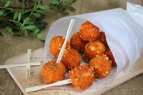 Как приготовить сырные пончики Ингредиенты: Приготовление: Шаг 1 Шаг 2 Потереть все виды сыров. Твердый сыр лучше потереть на мелкой терке. Шаг 3 К сырам добавить яйцо, муку и орегано. Замешать тесто. Удобнее начать в миске, а после вывернуть на рабочую поверхность и быстро собрать в единое. Тесто получается довольно плотным. Шаг 4 Сформировать из теста этакую колбасу и порезать небольшими кусочками. Сформировать влажными руками маленькие пончики и обвалять их в сухарях. Примерный вес моих пончиков - около 25 грамм. Шаг 5 В небольшой кастрюльке нагреть растительное масло. Если у вас есть градусник, то примерно до 150 градусов. Если градусника нет, то, например, опустите в горячее масло кусочек батона, он должен красиво зарумяниться в течении минуты. После этого сделать средний огонь и закинуть пончики. Они должны быть полностью погружены в масло и плавать свободно. Я делаю в 2-3 захода. Следите, что бы пончики не приклеились ко дну. Чем шире посуда для обжарки, тем больше уйдет масла.