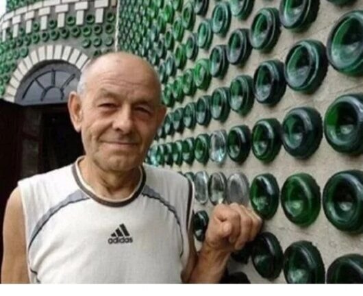 Обычно мы рассказываем истории про выдающихся людей, необычные традиции и в целом про жизнь на этом свете. Но сегодня нам хочется рассказать вам о.. смекалке. А еще находчивости, целеустремленности и упорстве, ведь именно из проявил герой нашей сегодняшней статьи. А дело все в том, что мужчина с фотографии ниже отличился... строительством дома, который он построил своими руками. Но дело не только в самом доме, но и в материале, который он для этого использовал - обычные стеклянные бутылки. Владимир Сыса из Запорожья целых 20 лет своей жизни потратил на возведения этого жилища. И еще столько же он копил для этого бутылки. Подумать тогоко, осуществление своего плана у мужчины ушло 40 лет! Срок немалый. Ещё в 80-е годы Владимиру попался в руки немецкий журнал со статьей про такой же дом из стекла. Тогда он и решил начать собирать бутылки из шампанского, чтобы построить ской дом - ничуть не хуже иностранного. Владимир долго копил бутылки, но проблема была не только в них: для строительст