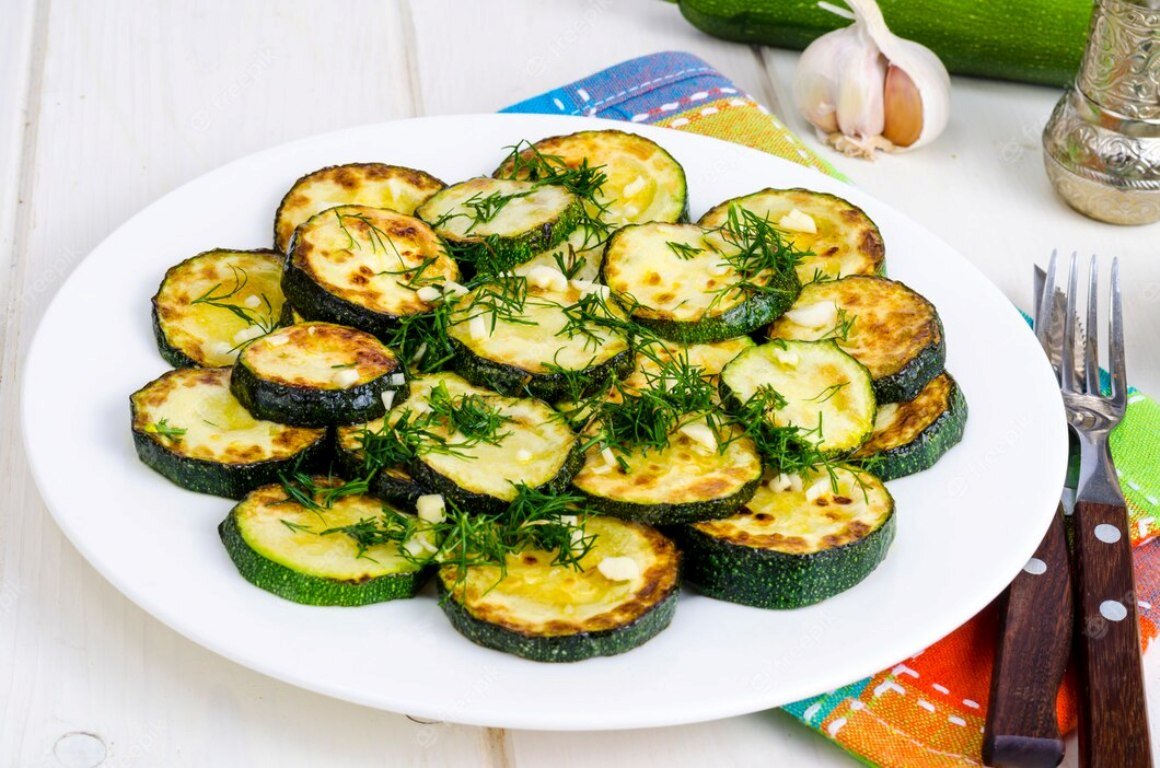 Жареный кабачок с чесноком и зеленью