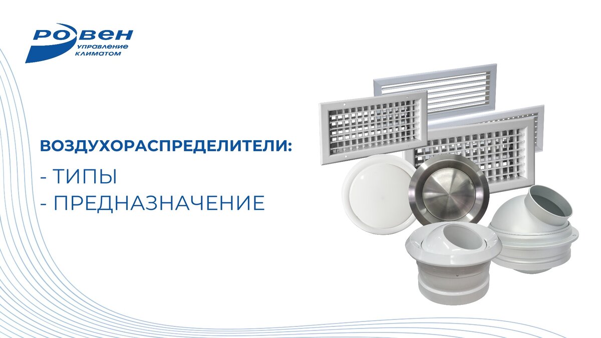 Воздухораспределитель - это устройство, которое способно обеспечить подачу и отвод воздуха в помещение, а также равномерно распределять воздушные массы по всему пространству. Используются в системах вентиляции, кондиционирования и отопления. Существует множество видов, форм и размеров вентиляционных решеток, каждая из которых выполняет определённую функцию и задачу. Типы воздухораспределителей: ◾ Решетки квадратные и прямоугольные - это один из самых распространённых видов решёток, применяются в системах вентиляции и кондиционирования, могут монтироваться на стены, потолки и пол. Этот тип решеток - конечный элемент систем распределения воздуха в помещениях, поэтому к ним предъявляются повышенные требования к внешнему виду. Виды решеток: ◾ Диффузоры используются для равномерного распределения воздушных потоков в жилых, административных, бытовых и производственных помещениях. Изготавливаются из АБС-пластика или алюминиевого профиля, с регулятором и без. Виды диффузоров: Для того чтоб
