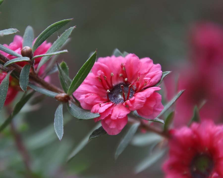 Это, потрясающей красоты, экзотическое растение, в нашей стране выращивается только в контейнерной культуре. Кустарник с красивой листвой, и ещё более эффектными цветками, невозможно оставить без внимания. Это - лептоспермум, или как чаще его называет - манука. А также можно услышать другое название - тонкосемянник. Небольшие листья растения имеют удлинённую форму, окрашены в тёмно-зелёный оттенок. В них содержится большое количество эфирных масел, их аромат можно почувствовать, если растереть их пальцами. Цветки также некрупные, (до 1 см в диаметре), но очень красивые. Они могут быть белыми, розовыми, малиновыми, красными, а сердцевина тёмного оттенка только подчёркивает красоту лепестков и добавляет оригинальности. Особенно хороши сорта с махровыми цветами. Цветёт манука с ранней весны до наступления лета. Это растение очень любит солнечный свет, и не боится самых жарких лучей даже на открытом воздухе, но только во время цветения желательно обеспечить рассеянное освещение. Субстрат