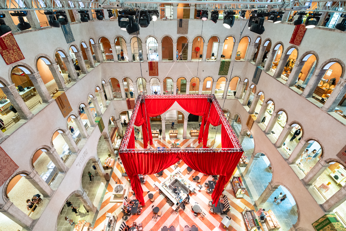 Один из лучших примеров реставрации и приспособления в древнем городе на воде: построенное у моста Риальто в первой половине XIII столетия здание долгое время стояло полузаброшенным, пока за него не принялись архитекторы. В итоге сегодня в старинных стенах палаццо сделан очень красивый торговый центр, сдобренный красного цвета эскалаторами с деревянными панелями и одной из лучших видовых точек — если забронировать на официальном сайте заранее временной слот, можно подняться на крышу и полюбоваться видами Большого канала и снующих по нему гондол, при этом последний пролет эскалаторов к этой крыше очень хорош собой.