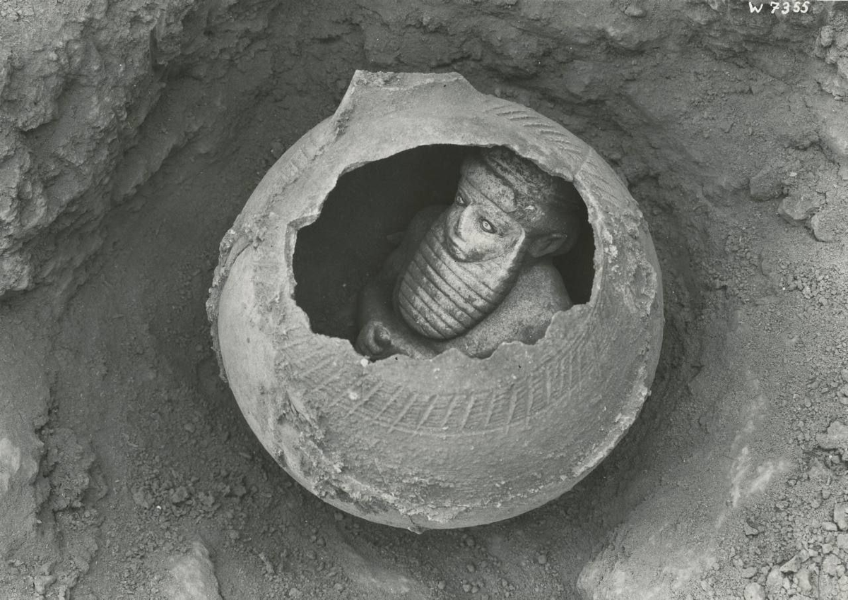 Шумерская статуя из города Урук, существовавшего еще в 3000 году до н.э, сейчас хранится в немецком музее Пергамон. Уникальная статуя, крайне необычная, изображает человека внутри сферы с отломанным лучом.