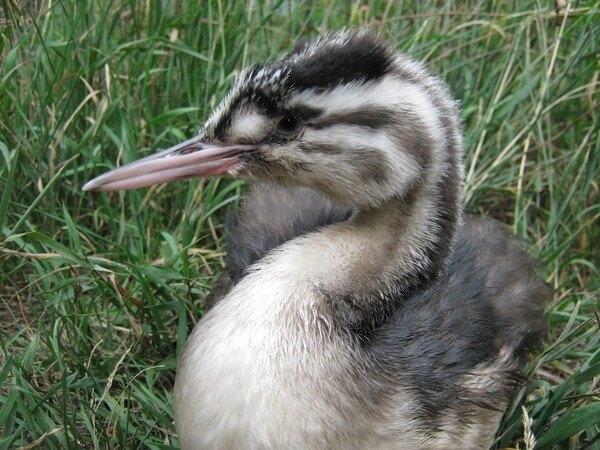"Чомга" звучит несколько экзотично, но обычное название этой же птицы звучит наоборот неприятно – большая поганка. Почему поганка? Да потому, что их тёмное на вид мясо имеет неприятный привкус. Хоть чомга и считается охотничьим видом, популярностью у охотников она не пользуется и может лишь случайно попасть под раздачу при охоте на уток. Что, собственно, ей на руку (или на крыло?..). А "большая" потому, что чомга является самой крупной из всех поганковых. Размером она чуть мельче кряквы. Внешность чомги достаточно интересная. Тело её создано для жизни на воде. Оно имеет обтекаемую форму и покрыто плотным водонепроницаемым оперением. При плавании над водой выступает прямая тонкая и очень длинная шея. Ноги расположены ближе к хвостовой части туловища. Пальцы ног не соединены перепонкой, а каждый в отдельности по всей длине имеет жёсткие уширения кожи. Пальцы завершаются плоскими когтями. У птицы короткие и узкие крылья. Хвост короткий, во время плавания прячется в воде. Окрас оперения п