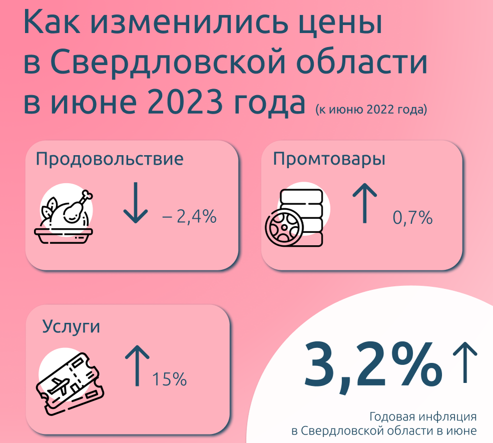 Среди непродовольственных товаров снижение цен на автомобильные шины замедлилось, и в июне 2023 года использованные иномарки стали дороже, чем год назад. Также замедлился темп снижения цен на стройматериалы в связи с ростом объемов выдачи ипотечных кредитов на строительство индивидуальных жилых домов и увеличением издержек производителей материалов для ремонта оборудования и компонентов, закупаемых из-за границы.