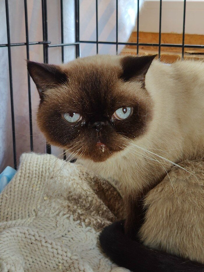 Кошка с рыбной костью пока тоже очень сильно переживает. Первые дни отказывалась от еды, но вчера начала есть сама и довольно много. Она у нас самая истощенная из всех. Сегодня пересажу с клетку.