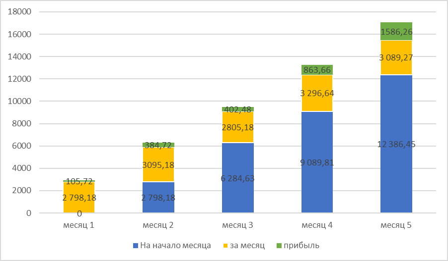 11,64₽ х 75 = 873₽ – стоимость на конец 4 месяца 12,631₽ х 75 = 947,325₽ - стоимость на конец 5 месяца Прирост: 947,325₽ - 873₽ = 74,325₽ (8,5%) #SBRB изменение стоимости за 5ий месяц 68 паев #SBRB, закупленных на начало 5го месяца: 13,129₽ х 68 = 892,77₽ - стоимость на конец 4 месяца 13,13₽ х 68 = 892,84₽ – стоимость на конец 5 меся