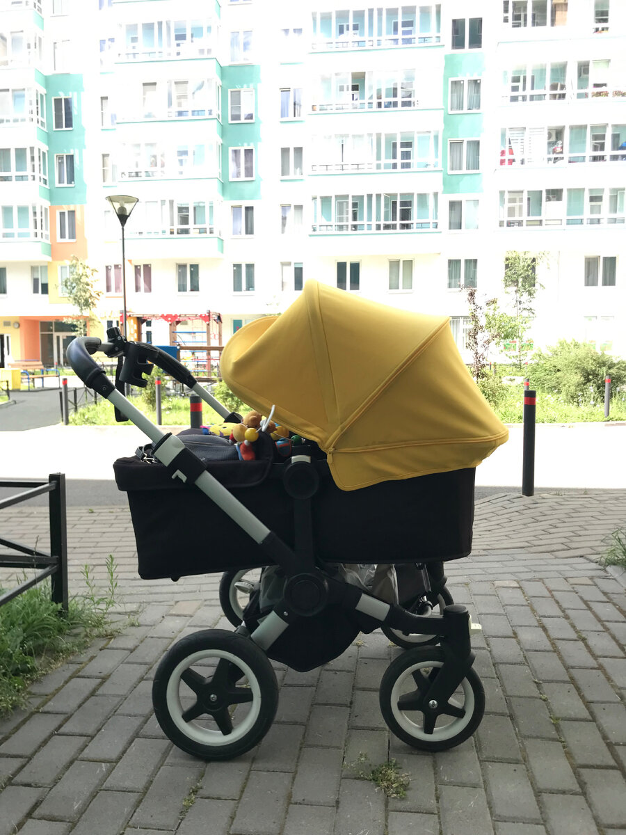 Мы не долго выбирали. В нашем дворе ещё за год до беременности одна мама ходила с коляской Bugaboo donkey2. В тот момент я даже не могла мечтать о второй беременности, тем более двойней. Но естественно, двойни всегда привлекают к себе все взгляды во дворе, особенно коляски. Многим это кажется чем-то нереальным и я тоже так думала, а потом мы просто сами были ошарашены новостью про двойню. Так вот! Коляска просто супер! • Она проходит в лифт грузовой, в почти все двери, потому что каждая люлька уже стандартной, но при этом детям комфортно, не узко. • Коляска очень манёвренная. • Также сама по себе легкая, очень удобные капюшоны, потому что их можно открывать не полностью, они гибкие (на фото). • У коляски прекрасная амортизация. • Порой у нас ломается большой лифт и мы используем пассажирский, делая из коляски полуторную. Для этого мы снимаем 1 люльку, на них есть удобные ручки и делаем основание коляски более узким, очень легко, для этого не нужна помощь. И так спускаемся с 7 этажа.