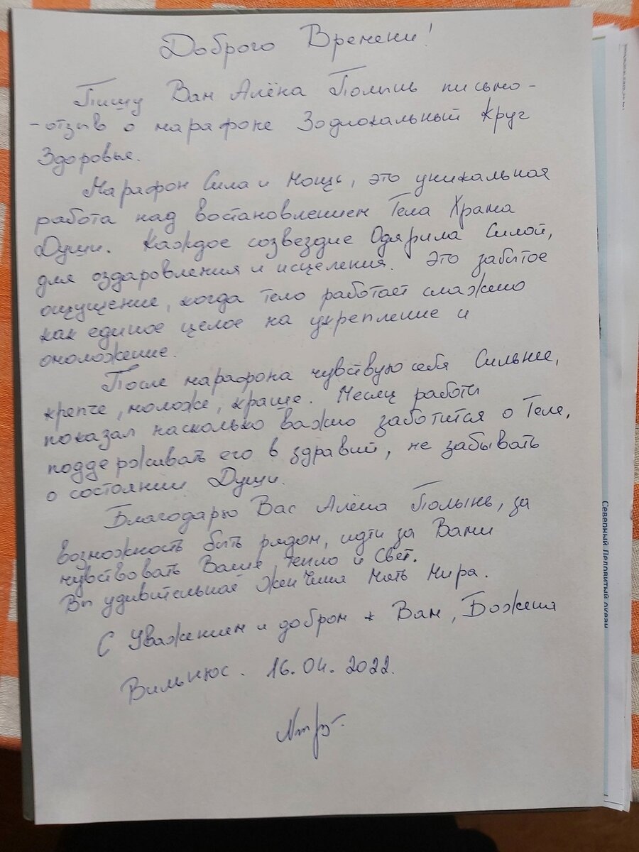Пишу Вам Алена Полынь письмо-отзыв о марафоне «Зодиакальный круг здоровья».