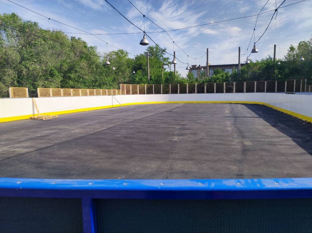 Хоккейная площадка размещена за зданием Детской школы искусств. Здесь были выполнены работы по укладке асфальта, монтаж ограждения из стеклопластика, установлено уличное светодиодное освещение и оборудования для видеонаблюдения.