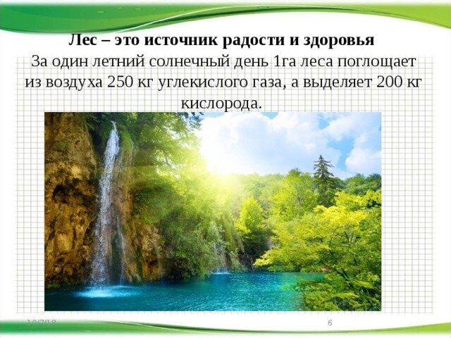Каждый из нас, находясь в лесу или парке, ощущал, как легко дышится в тенистой прохладе деревьев. Вряд ли можно что-либо противопоставить лесу, который вызывает столько приятных ощущений, так поднимает работоспособность и настроение человека.