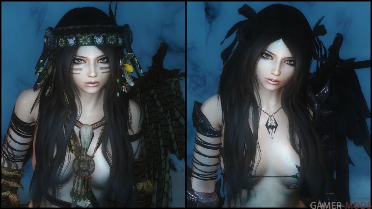 Мод добавляет довольно объемный пак брони в двух стилистиках: индейском и тяжёлом (металлическом), а также лук, кинжал, топор, стрелы, накидку - крыло c HDT, различные украшения для вашей героини.
