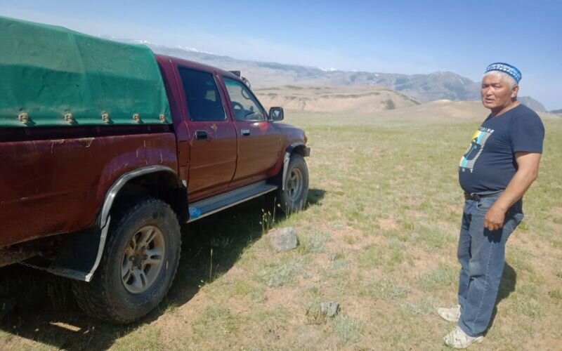 С замиранием сердца садимся в его старенький сурф и едем к цели. Едем сначала по асфальту, примерно 10 км, потом резкий поворт в сторону, на грунтовку, которая все время идет в гору. Потом она исчезает вовсе, мы едем просто по склону вверх насколько позволяет угол наклона. Кругом торчат камни, большие и маленькие, лавируем между ними. Видно, что не в первый раз едет сюда Андриян Адаевич. Уверенными движениями выполняет виртуозные маневры между остроконечных глыб. Одно неверное движение, и можно напороться на острые камни, и тогда прощай, колеса!
