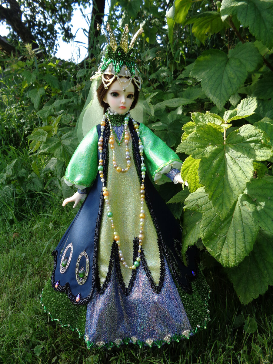 Итак, образ Царевны-Лягушки готов, и мы вышли на природу пофотографироваться)) На солнышке: Некоторые детали более крупно: Сравним готовый образ с образцом? Завтра выложу Василису.