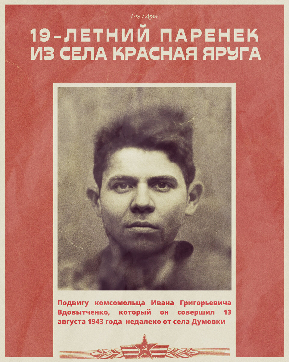 Белгородцы свято чтут бессмертный подвиг комсомольца из Красной Яруги Ивана Вдовытченко. Он родился в рабочей семье 24 апреля 1924 года и, окончив семилетку, в шестнадцать лет пошел работать на сахарный завод. 20 октября 1941 года фашистские войска заняли родное село. Зверства оккупантов, их «новый порядок» звали к мести.