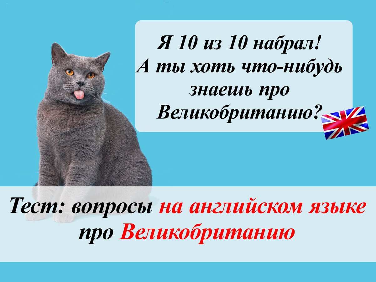 Здравствуйте, уважаемые читатели! На связи снова English Cats! Зачастую изучение иностранного языка – это не просто заучивание слов и грамматических правил, это некое погружение в культуру другой страны. Так как родиной английского языка является все же Великобритания, сегодня вас ждет тест из 10 вопросов, связанных с культурой, историей и традициями этой прекрасной страны. Готовы проверить свою эрудицию? Тогда этот тест точно для вас! Вперед! Тест состоит из 10 вопросов, в каждом из которых может быть только один правильный ответ. Будьте внимательнее! Поехали! Надеюсь, что вас порадовал ваш результат! Спасибо, что были с English Cats! Не забывайте ставить лайки и подписываться на канал! #english cats #english #английский язык #английскийонлайн