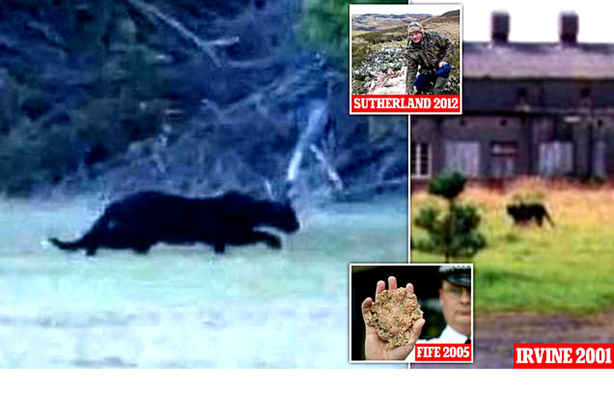 22 июля 2023 года. За десятки лет в Шотландии было зафиксировало более 1 300 случаев наблюдения крупных хищников, похожих на кошек. И, по-видимому, именно эти кошки нападают на местных овец, разрывая туши на части. Газета Dailymail вышла под заголовком: «Домашний скот разорван на куски. Туши с огромными следами проколов глубоко в кости. Поступило более 1 300 сообщений о наблюдениях. И эксперты по дикой природе относятся к ним серьезно... Доказывает ли это новое досье, что в Шотландии рыщут большие кошки?». В Шотландии и некоторых районах Англии загадочных больших кошек (зачастую чёрного цвета) видят уже на протяжении нескольких десятилетий. И до сих пор нет никаких явных доказательств того, что это, в самом деле, реальные леопарды или ягуары, сбежавшие из цирков или частных зоопарков, или что-то иное. Ходят слухи, что на самом деле в Шотландии обитает уже довольно крупная популяция леопардов, просто они живут в горных малолюдных районах, поэтому лишь изредка попадаются на глаза людям.