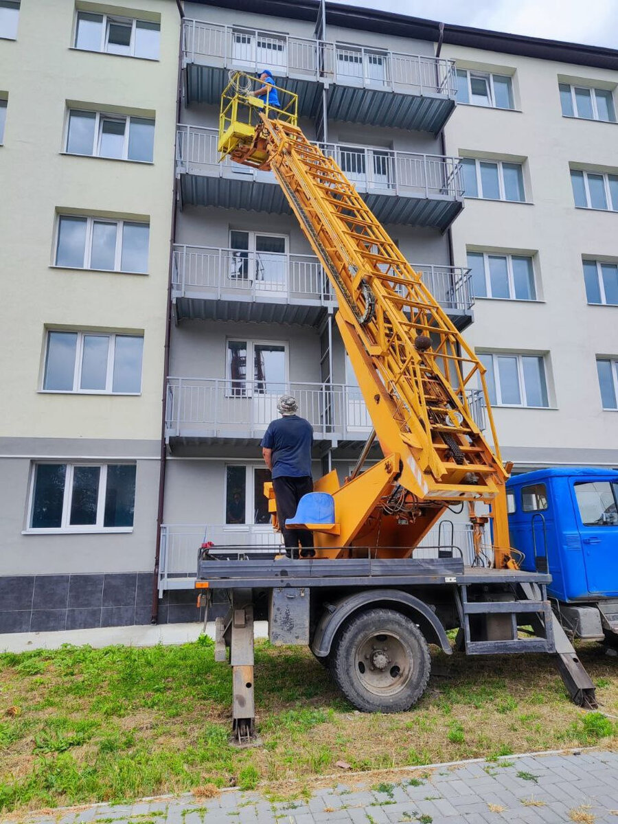 Работы по восстановлению здания начались в июне этого года. К этому моменту уже завершена установка осветительных приборов и проводится уборка квартир и подъездов.