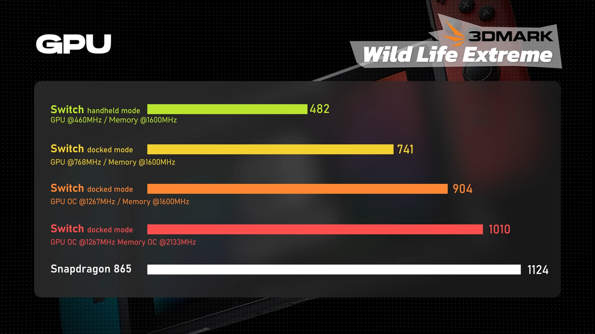 Более того, он также увеличил тактовые частоты GPU с 768 МГц до 1.267 ГГц, что обеспечило улучшение частот GPU более чем на 60%. Как подчеркнул Geekerwan, чип Tegra X1 работает на гораздо более низких тактовых частотах, чем это могло бы быть, в основном потому, что Nintendo стремится снизить температуру Switch.