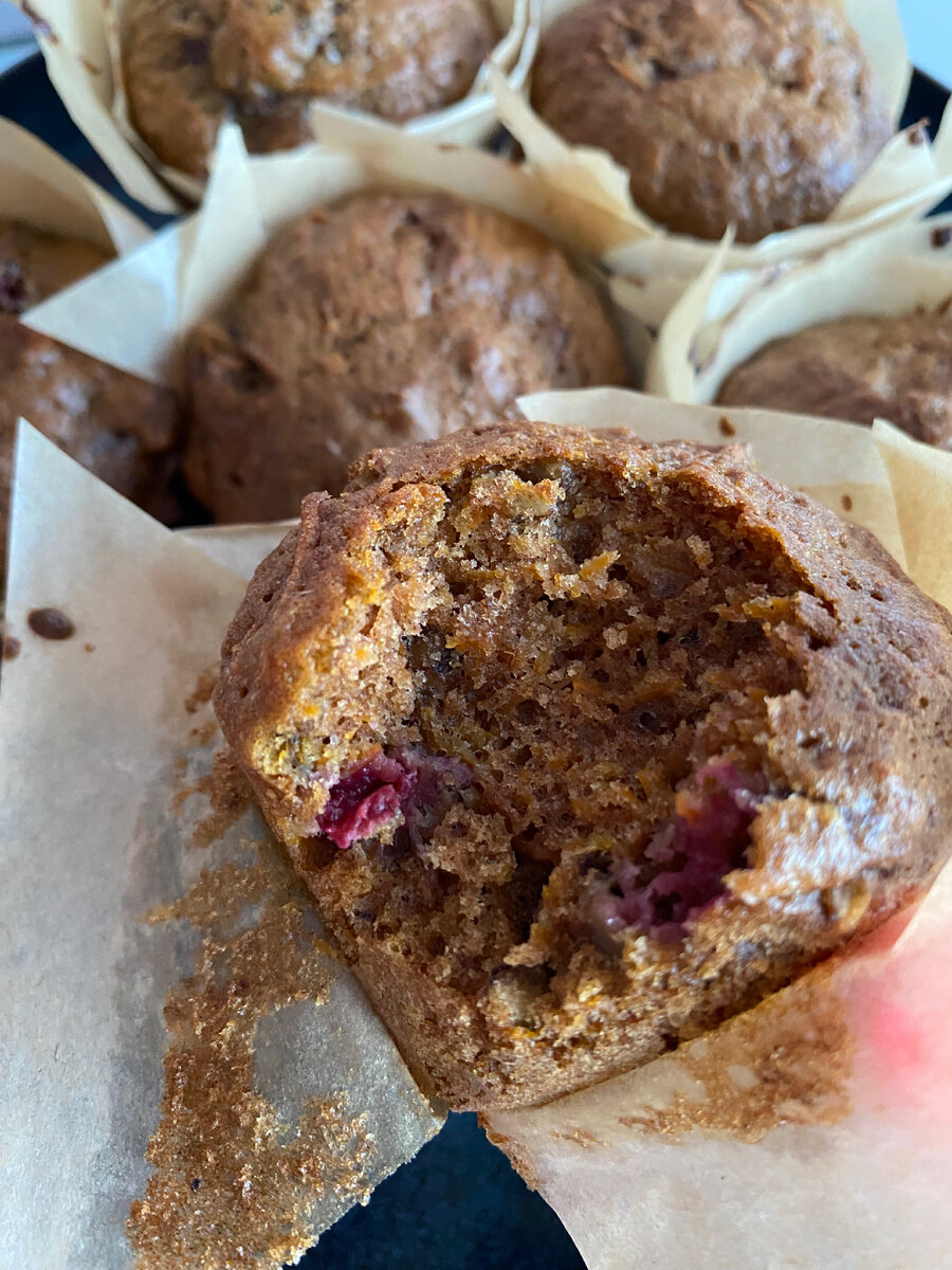 Всем большой привет! Те, кто первый раз попробовал морковный торт или пирог, наверняка удивился. Ведь вкус моркови совсем отсутствует. Так было у меня) Теперь это мое одно из любимых десертов, который легко приготовить самому. Ну, поехали! Нам понадобиться: Взбиваем яйца с тремя столовыми ложками сахара, одной ложкой ванильного и щепоткой соли. Добавляем растительное масло и перемешиваем. Теперь просеиваем муку, лучше добавлять постепенно, чтобы контролировать густоту теста, оно должно быть по конситенции как тесто на оладушки. Добавляем корицу. Далее добавляем натертую морковь. И разные добавки, в виде орехов и ягод) Теперь разливаем тесто по формочкам, отправляем в духовку на 25-30 минут, разогретую до 180. Оставляем остыть и приступаем к употреблению. Всем приятного аппетита!