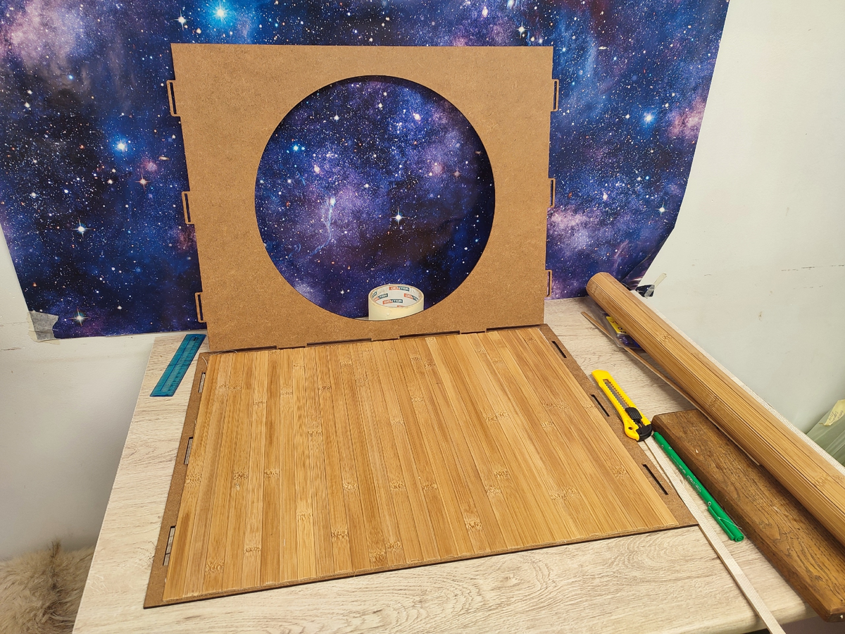 Я уже рассказывала, что был заказной румбокс по мотивам сериала. Но тот уехал в новый дом заготовкой, а самый первый, пробный вариант, я решила отделать сама. Сначала вырезала пол нужного размера. Потом покрыла одну стенку шпатлевкой и нарисовала на ней досочки. Дождалась пока все высохнет и покрыла боковые стенки черной краской, а "дощатую" лаком с добавлением того же колера, что и в шаптлевку. Стекло пока не вклеила. Я купила краску для него, но не решила, надо ли рисовать витраж или нет. Просто приставила. На стену решено было сделать декоративные панно. Я приклеила бумагу для скрапбукинга на фанерки, а их к стене на двухсторонний скотч. Получилась вот такая комната. К сожалению подходящей мебели для нее у меня особо нет. Потому пока такая композиция. И с жильцом для примера. Мне кажется, вышло довольно стильно, не уверена, даже, что стоит делать цветастый витраж. А вы как думаете?