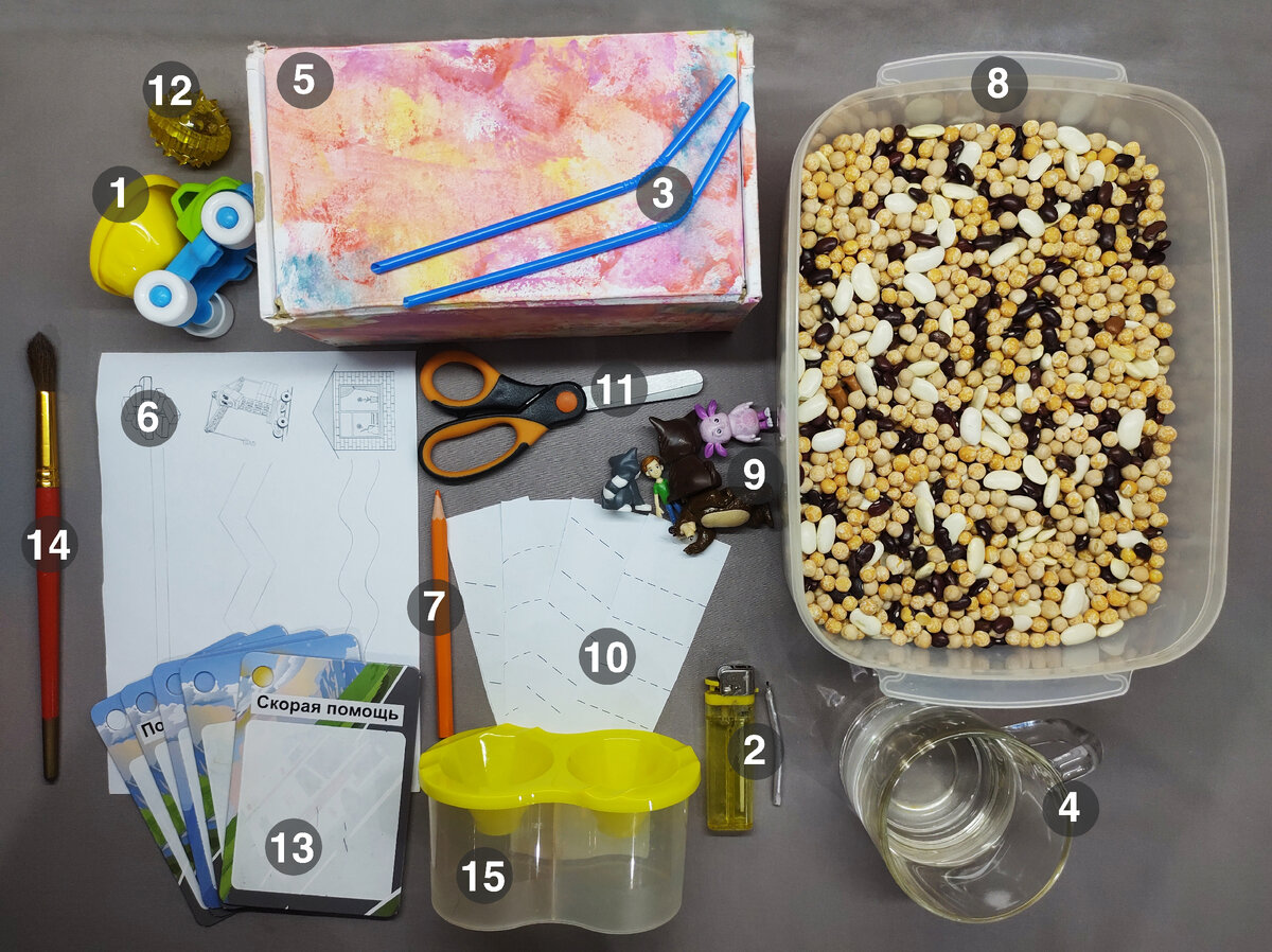 1) Игрушка грузовик. Если такой нет, можно взять любую машинку или вырезать её из бумаги, картона;