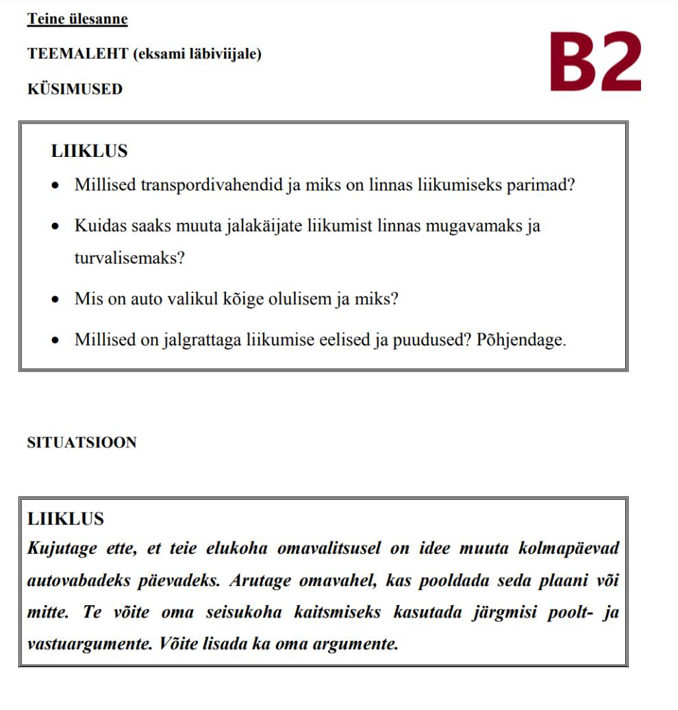 EstELN. О разнице между устным экзаменом по эстонскому языку на B2 и на C1 (второе задание)