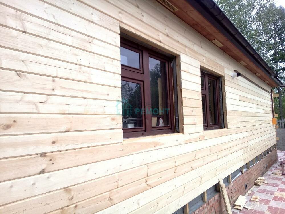 Устройство фасадов и внутренняя отделка помещений – не самая ответственная работа при строительстве индивидуального жилого дома, но красиво оформленные фасады и оригинальные интерьеры придадут зданию, сделанному даже из недорогих материалов, вид коттеджа, построенного из натуральных материалов. Одним из таких способов преображения дома усадебного типа является использование имитации бруса. Где используется имитация бруса Имитация бруса – один из видов евровагонки, имеющий трапецеидальный профиль, и создающая после отделки поверхности стены вид брусового сруба из натуральной древесины. При этом неважно, из какого материала выполнено здание: из кирпича, щитов заводского изготовления, легкобетонных блоков, сборных железобетонных конструкций или монолитного бетона – отделка таким пиломатериалом, как имитация бруса, позволит строению выглядеть сложенным из дорогостоящего профилированного бруса. Вдобавок к эстетичным фасадам, использование имитации бруса даёт возможность снизить толщину нару