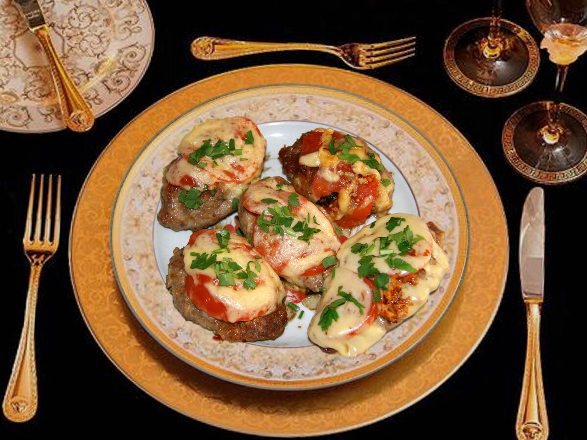 Рецепт для мультиварки Panasonic-18. Продукты 300 г смешанного мясного фарша (свинина, говядина) 1 луковица 1 яйцо 1 ломтик чёрствого белого хлеба 1/4 ч. л. базилика 1/4 ч. л. майорана 150 г сыра 1 помидор Соль Перец Растительное масло Свежая зелень Приготовление 1. Ломтик белого хлеба замочить в воде, затем отжать. Лук мелко порубить. Сыр натереть на тёрке. Помидор нарезать кружочками. 2. Установить программу «Выпечка» - 40 мин (в современных мультиварках - «Жарка», время 25 – 30 мин). В чашу мультиварки налить растительное масло и нагревать его приблизительно 8-10 мин (в других мультиварках 3 – 5 мин). 3. Перемешать фарш с луком, хлебом, яйцом, травами, посолить, поперчить. Добавить натёртый сыр, немного оставив на посыпку. Хорошо перемешать. Сформировать крупные котлеты. 4. В разогретое масло выложить котлеты и жарить 15 мин (в других мультиварках 8 – 10 мин). 5. Затем перевернуть обжаренной стороной вверх и положить на каждую котлету кружочки помидора. 6. Сверху посыпать натёртым