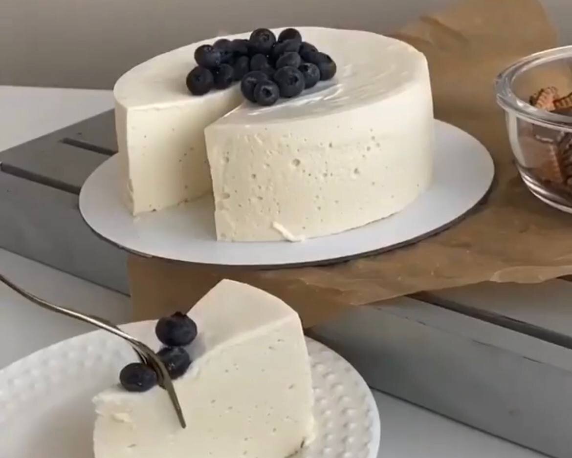 5. По ложке вводим масло - сгущенку, минуту взбиваем. Выливаем в форму, охлаждаем 2 часа.