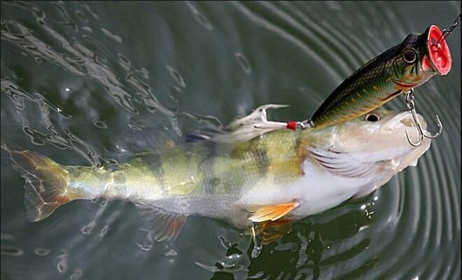 Окунь никогда не остается равнодушен к такой приманке как поппер, особенно если он охотится стаей. Нередко она может «завести» и одинокого, даже самого пассивного представителя этого вида рыбы – и все благодаря шуму, который издается при проводке. Если вы заинтересовались ловлей «полосатика» на поппер, то самый первый вопрос, который может у вас возникнуть, это как правильно подобрать уловистую приманку? Вот это мы и обсудим. Опытные спиннингисты очень часто сталкиваются с такой ситуацией, когда размер пойманного окуня не значительно превышает размер самой приманки. Все связанно с тем, что эта рыба очень ненасытна, а ее рот позволяет заглатывать очень большие предметы (иногда окунь поедает небольшие ракушки, но случается это, как правило, в периоды голодовки). Поэтому не стоит бояться выбрать габаритные поппера. Этим вы исключите возможность попадания на крючок более мелких особей. Почему же он так интересует хищника? Сама игра приманки очень напоминает кормежку рыбы на поверхности