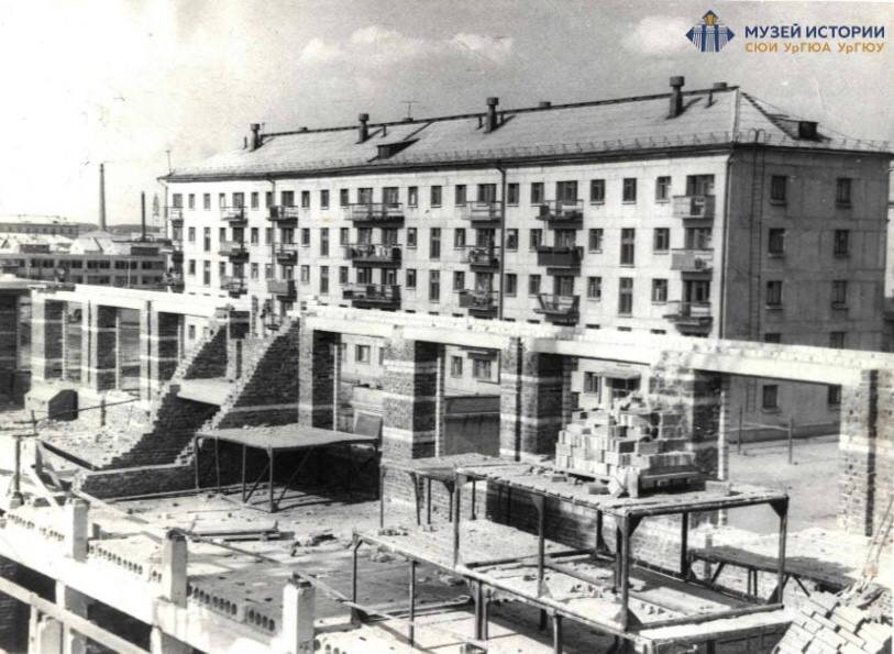 К середине ХХ века Свердловский юридический институт стал одним из ведущих вузов в области подготовки юристов. Студентов становилось все больше, появлялись новые кафедры, факультеты - возникла необходимости в новых корпусах и общежитиях. В результате в начале 60-х гг. закончили строительство общежития (Комсомольская, 23 - позднее здание переделали под учебные аудитории). В конце 60-х гг. достроили ГУК (Комсомольская, 21) и вскоре еще одно общежитие (Комсомольская 21,а). В 1975 году сдали в эксплуатацию общежитие на ул. Июльской. 1989 год - сдан новый большой учебный корпус на ул. Колмогорова. В 2008 году рядом с ним достроили общежитие. На фото - строительство главного учебного корпуса на Комсомольской, 21.