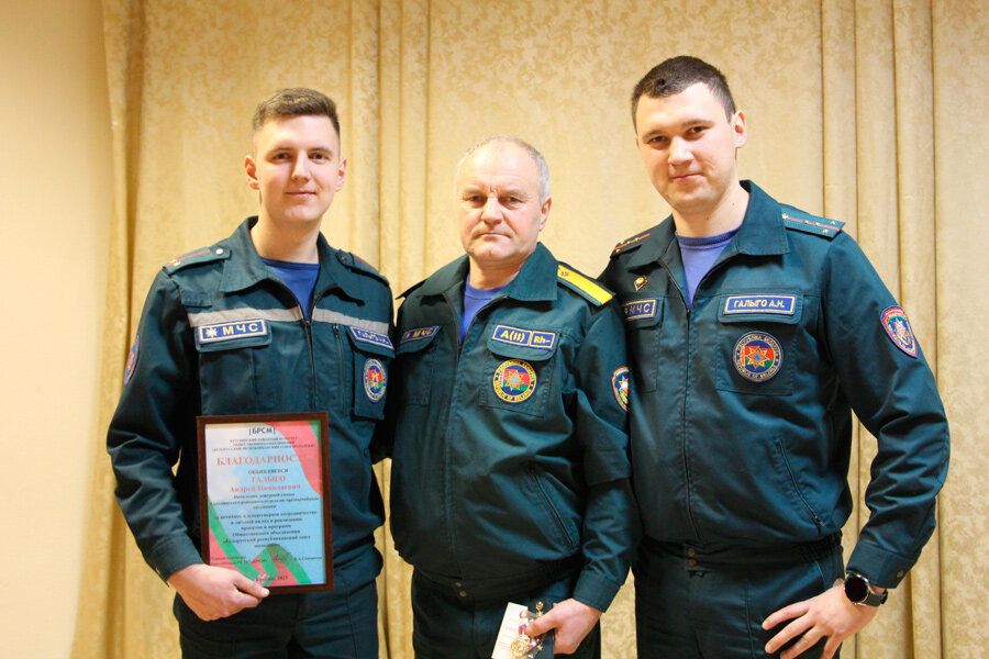 С особой гордостью Елена Андреевна Галыго из д. Круча сегодня может говорить о том, что в их семье аж три спасателя: муж Николай Николаевич и двое сыновей Александр и Андрей. Видя пример своего отца, каждому из них, как признаются сами, было совсем несложно определиться с «билетом» в будущую профессию. Оба еще в детстве, часто бывая у папы на работе, наблюдая за тонкостями профессии, осознавая её высокую значимость, для себя решили, что сделают всё возможное, чтобы тоже служить в МЧС. И у каждого из них, как видим, это получилось. Да, до солидной отцовской выслуги, которая составляет свыше 20 лет (глава семейства Николай Галыго работает водителем ПАСП №12 Круглянского РОЧС с 1999 года, правда, тогда это был отдельный пост военизированной пожарной службы), сыновьям еще далеко. Но первые, уверенные шаги по службе уже сделаны. Старший из них, капитан внутренней службы Александр Галыго, работает заместителем начальника Круглянского РОЧС, где и начинал свою службу по окончании Командно-инже