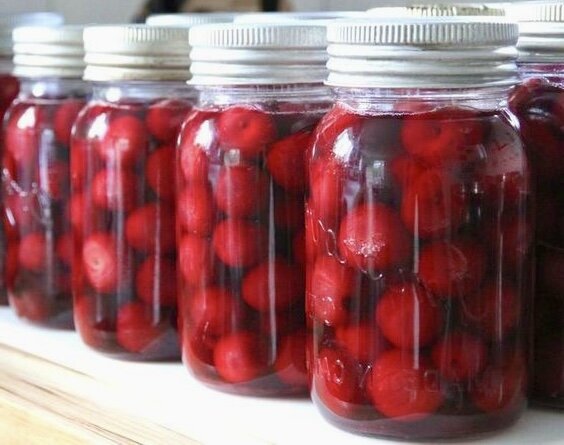Отличный рецепт вишни в собственном соку для любителей ягодных пирогов, штруделей, сдобной выпечки. Зимой можно сварить вкусный вишневый кисель или даже испечь торт «Черный лес». Хорошая альтернатива замороженным ягодам. Отсортированные вишни промыть и удалить плодоножки. Из 30% подготовленных вишен удалить косточки, измельчить ягоды без косточек на мясорубке или в блендере, затем отжать сок, добавить в него сахар (300 г на 1 л сока) и нагреть смесь до 90-95°С. Можно также использовать вишневый сок, приготовленный любым способом. Оставшиеся целые вишни укладывают в сухие чистые банки и заливают кипящим соком. Банки накрывают крышками, помещают в емкость с горячей водой и стерилизуют при 100°С. Время стерилизации банок: вместимостью 0,5 л - 20 мин, 1 л - 25 мин. После обработки банки герметически укупоривают, переворачивают вниз горлышком, накрывают плотной тканью и медленно охлаждают. ❤️Если Вам была полезна эта статья или понравился рецепт, поставьте лайк 👍🏽 Так я пойму,что т